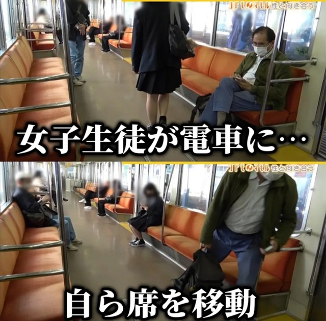 男子じゃないから席を離れた😨