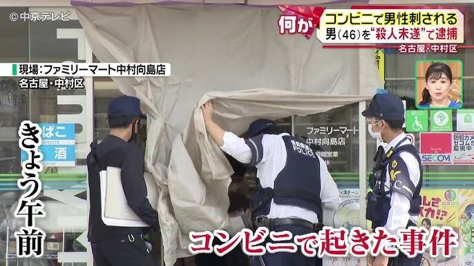 コンビニで男性刺される 刺した男を逮捕 名古屋22日朝、名古屋市中村区のコンビニエンスストアで50代くらいの男性が刃物で刺された事件で、逮捕された46歳の容疑者は、男性を背後から刺し、振り向いたところをもう一度刺していたことが、警察への取材で分かりました。調べに対し、黙秘しているということで、警察が詳しいいきさつを調べています。