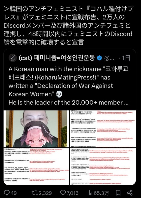 韓国のアンチフェミ団体種付プレス、2万人の軍勢を指揮しフェミのDiscodeサーバーを破壊すると宣言www 2024/10/23 キニ速 1:名無し :2024/10/23(水) 14:15:03.567ID:2tfFnA6M0 これが『戦争』だよ 8:名無し :2024/10/23(水) 14:16:11.685ID:2nXgViXw8 その名前はなんだよ 5:名無し :2024/10/23(水) 14:15:45.363ID:9e7PsSCkc ブルアカほんま覇権やな 9:名無し :2024/10/23(水) 14:16:12.828ID:DTadYzxW1 草 続きを読む Source: キニ速