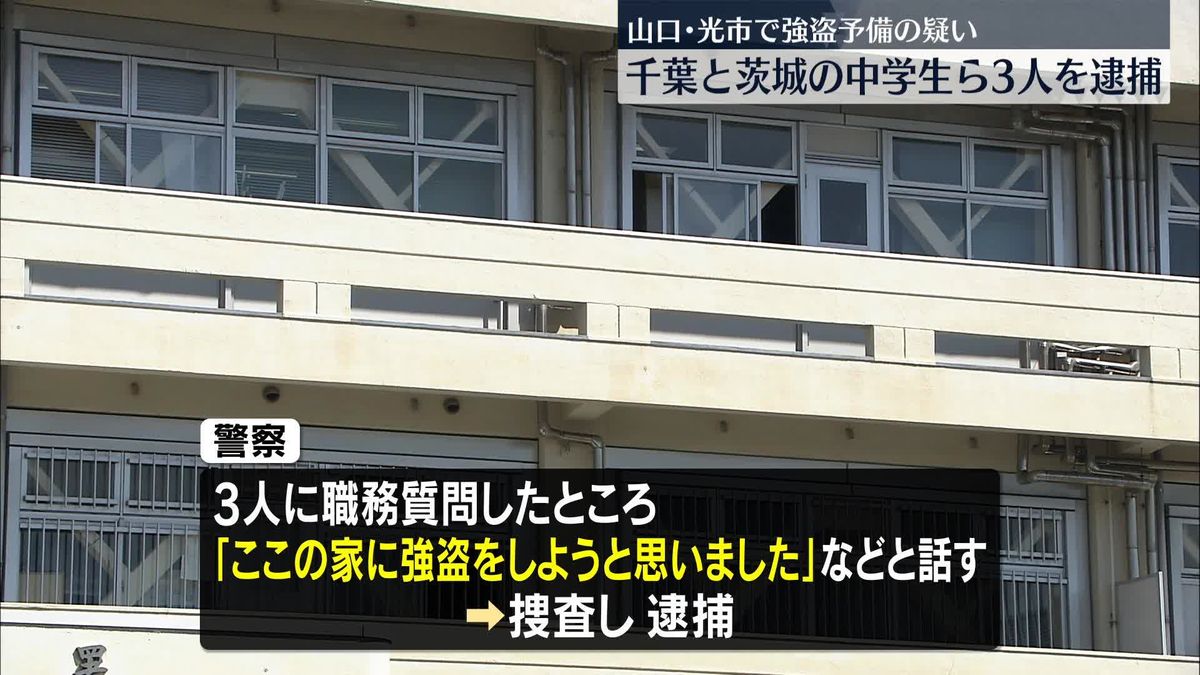 強盗目的で工具などを持っていたとして、千葉県や茨城県の中学生や高校生の少年ら計3人を逮捕した。SNSなどでつながる匿名・流動型犯罪グループと関連があるとみている。