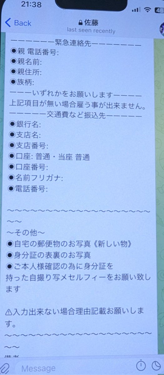 闇バイト、さらに個人情報家族の情報聞き出してきた
