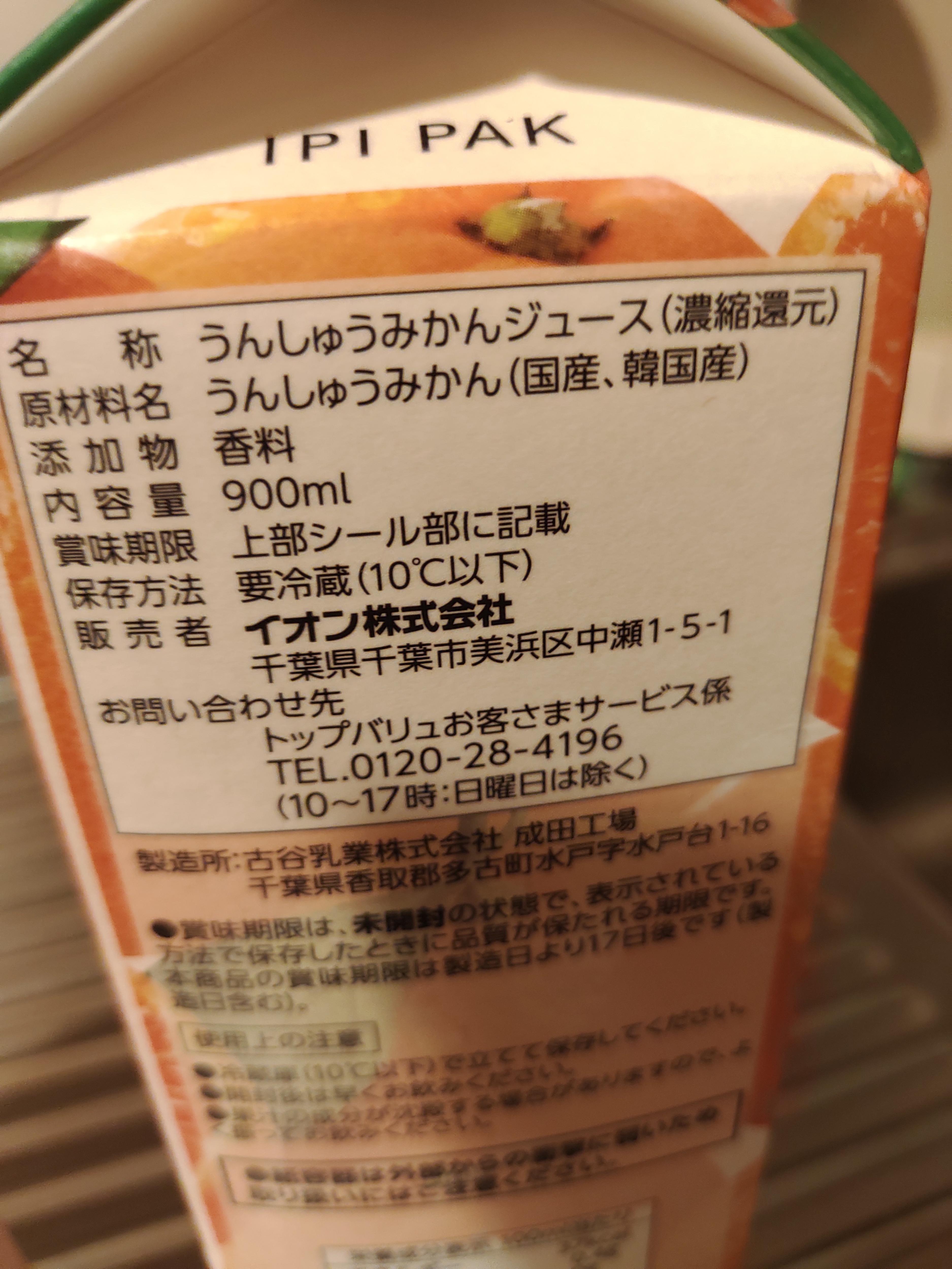 温州(ブレンド)みかん100%ジュースだから嘘はついてないな