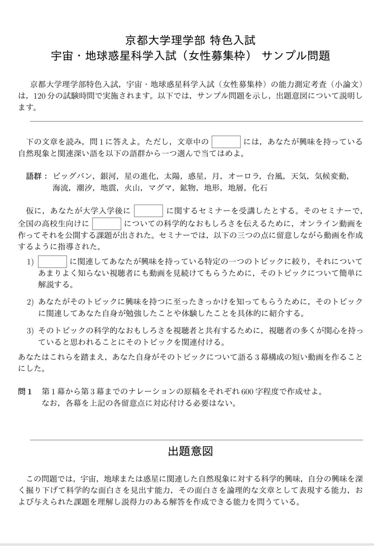 こんなアホみたいな試験で京大に入れるの「女子枠」じゃなくてちゃんと「障がい者枠」って明記した方がいいだろ。 pic.twitter.com/ZPAPc2BOHv