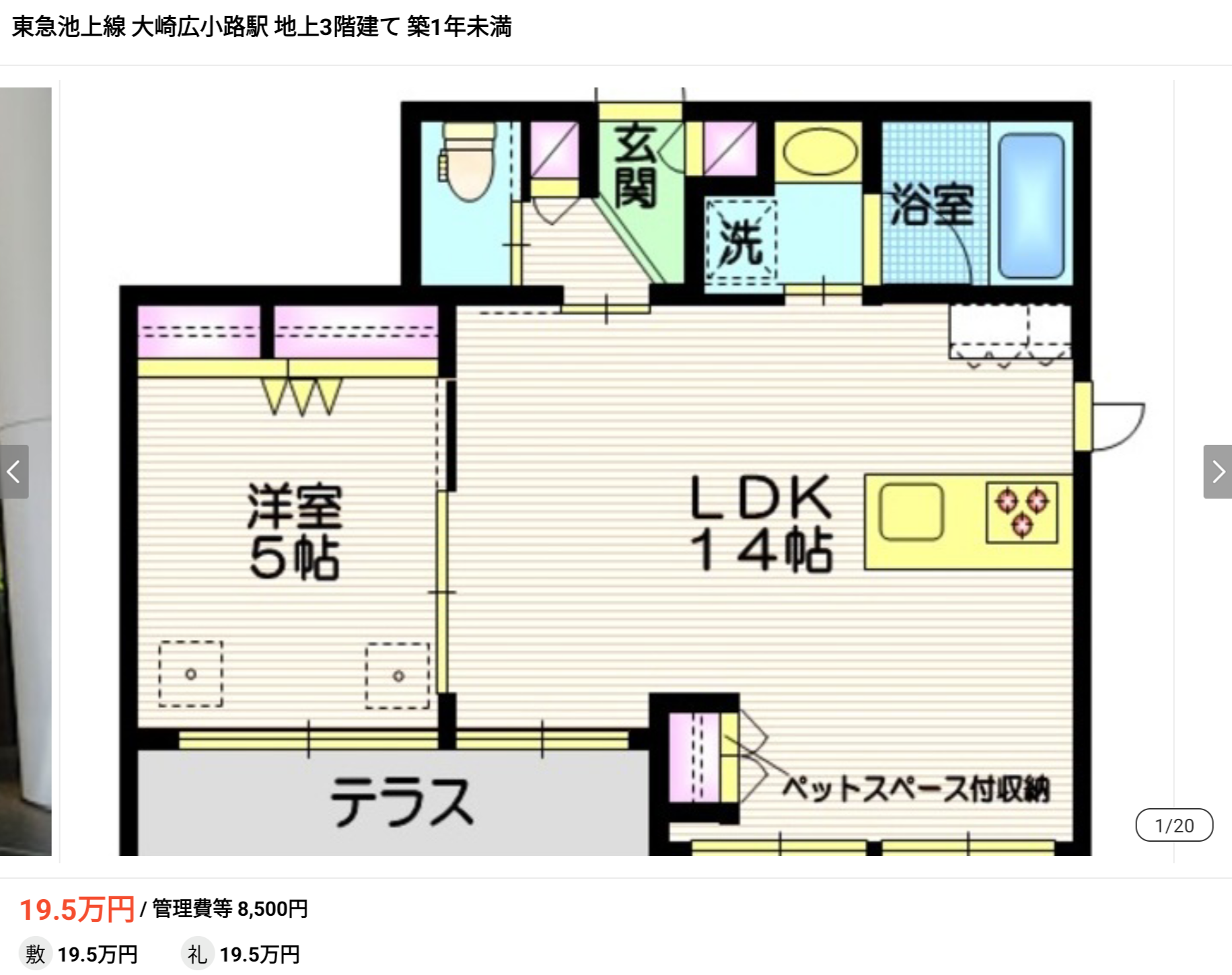 LDKにダイニングテーブルとソファを置いても十分な広さがある