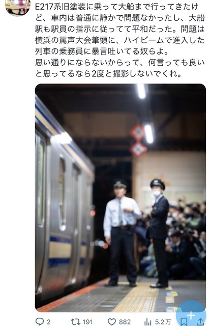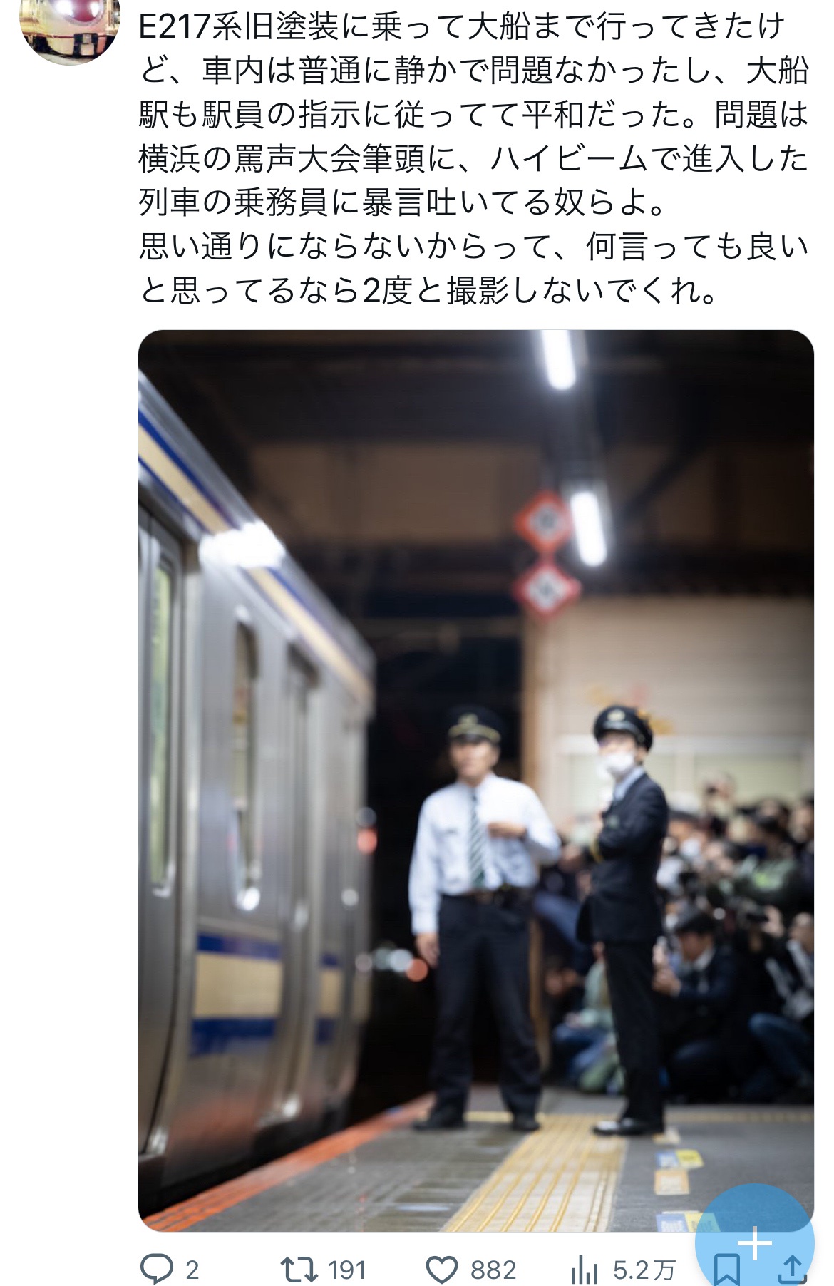 撮り鉄殺到、運転士に罵声を浴びせたり駅員に暴言を吐くホームの一般客を怒鳴る、など迷惑行為を行う