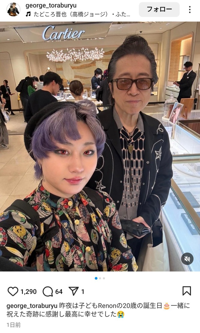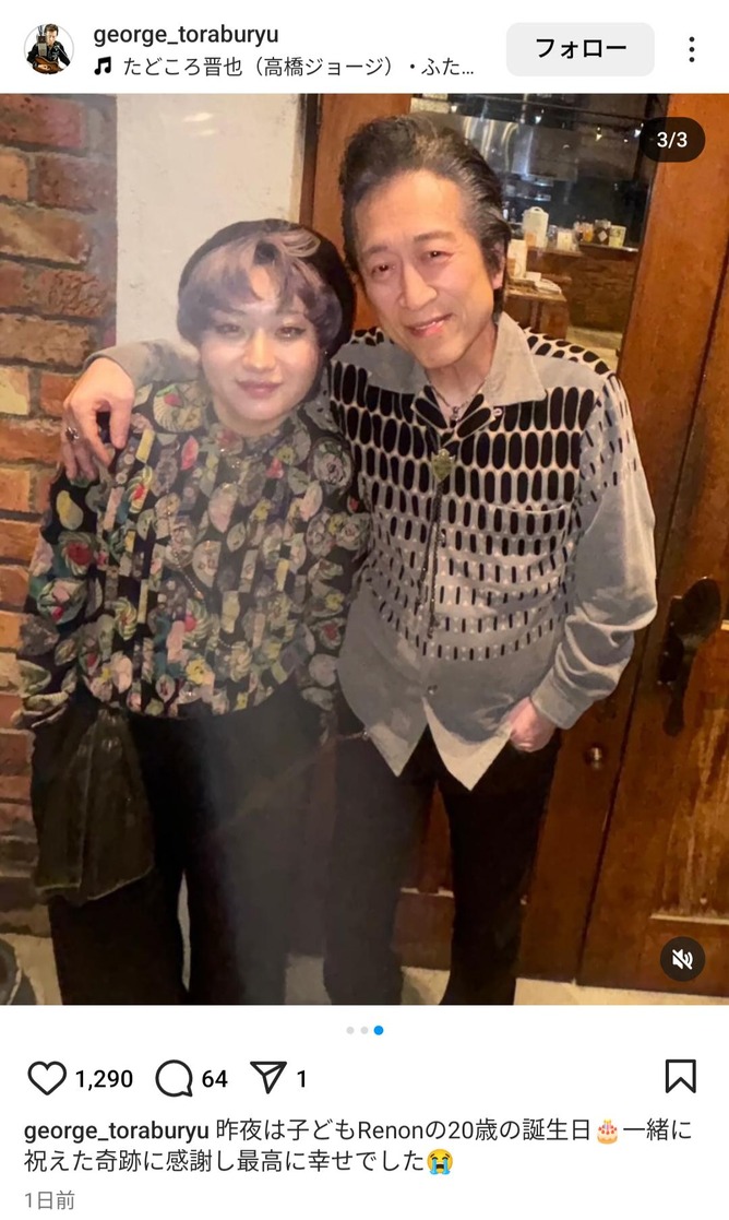 高橋ジョージ 20歳になった長女と再会親子ショット!「かわいらしい」「初めて見ました」離婚成立から8年