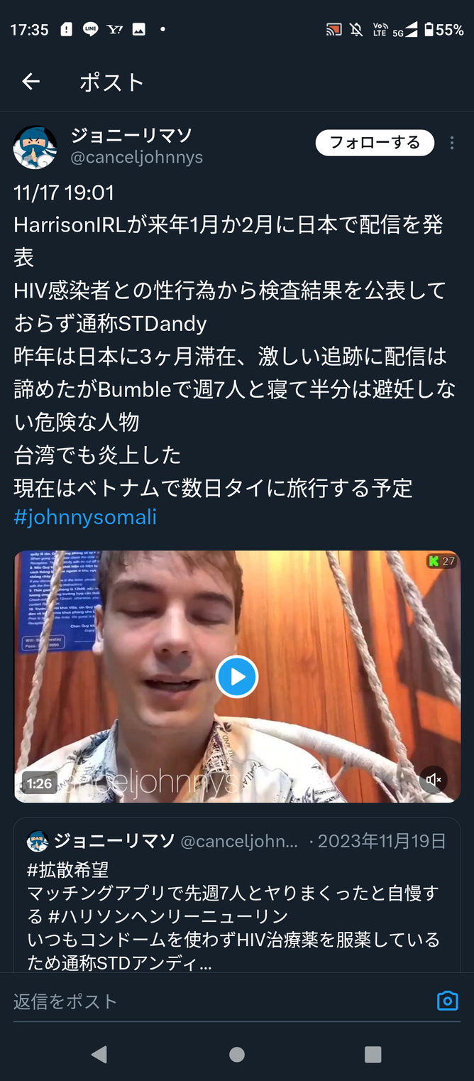 エイズ検査で陽性の白人男性が日本人女性とワンナイトセ●クスを告白