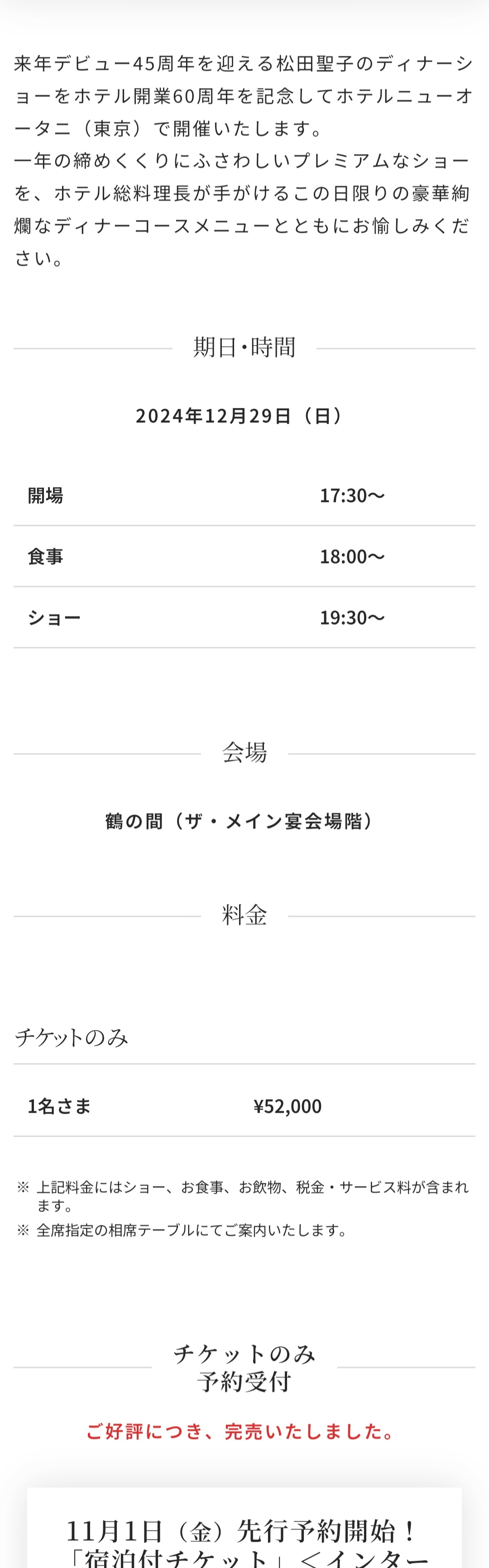 松田聖子のディナーショー“”“52000円”“”もするのに完売