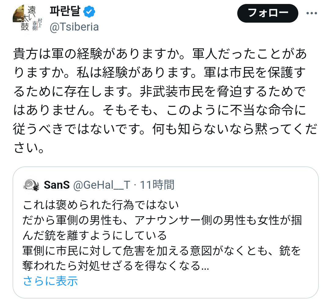 【悲報】X民、韓国兵に立ち向かった女さんを冷笑して炎上