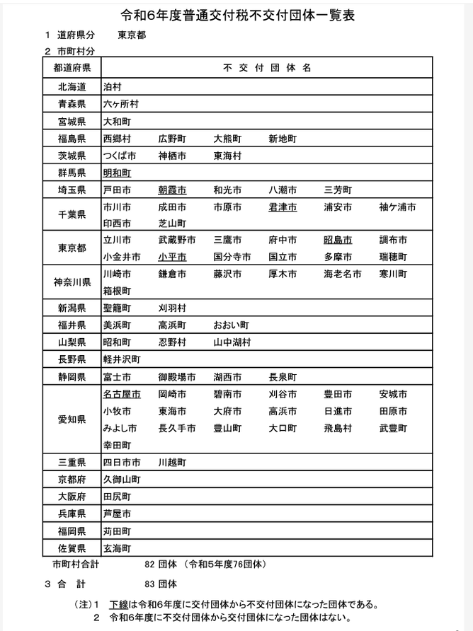 【悲報】地方交付税もらってない金持ち市町村の数、東京より愛知県の方が多い