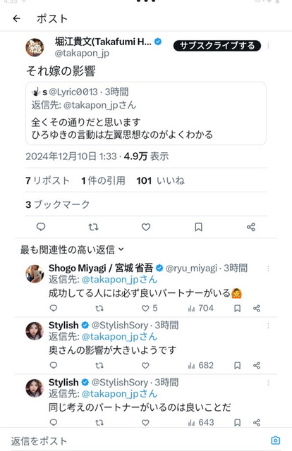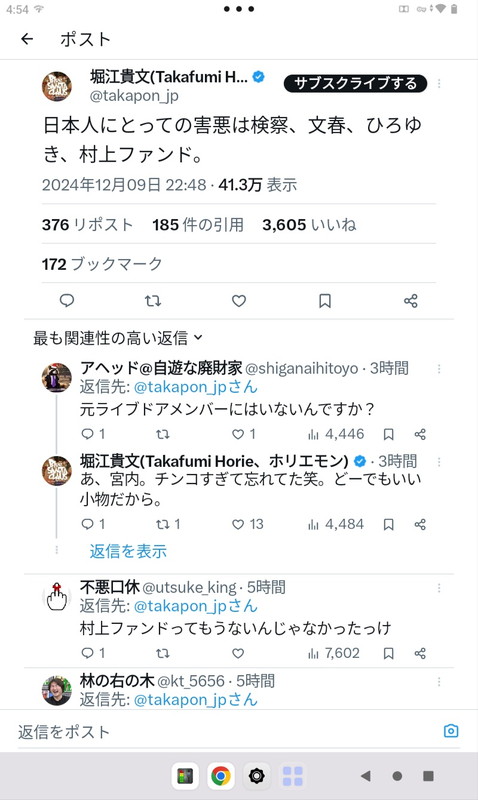 — 堀江貴文(Takafumi Horie、ホリエモン) (@takapon_jp) December 9, 2024