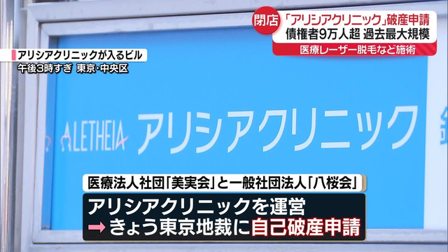 医療脱毛大手「アリシアクリニック」経営会社2社が破産を申請 被害者数は約10万人(東京商工リサーチ) – Yahoo!ニュース
