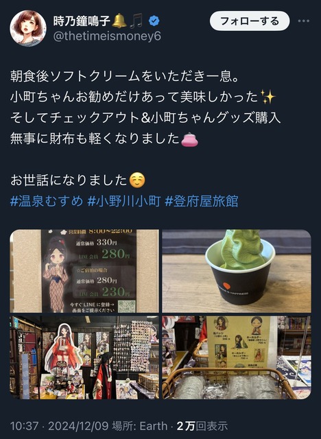 — 時乃鐘鳴子🔔🎵 (@thetimeismoney6) December 9, 2024