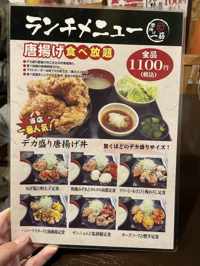 店外の看板では「唐揚げ食べ放題」としか書いてないしランチメニューがある