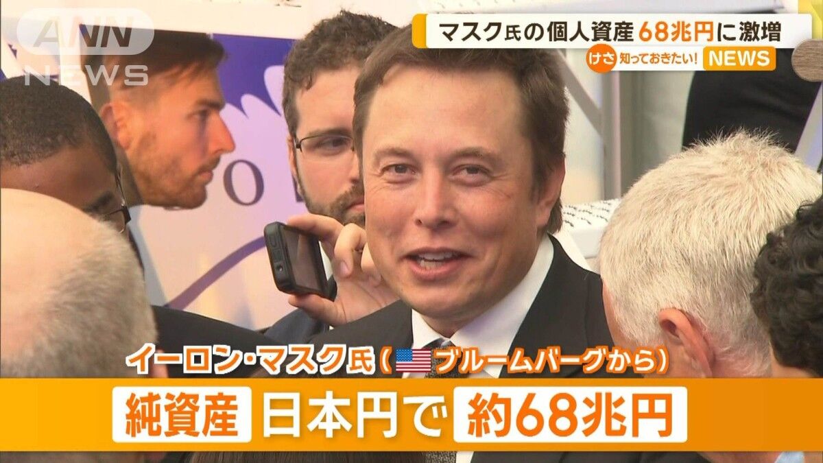 人類初の個人資産68兆円…イーロン・マスク氏、1か月余りで28兆円増加https://t.co/iUFNeSuipJ#経済