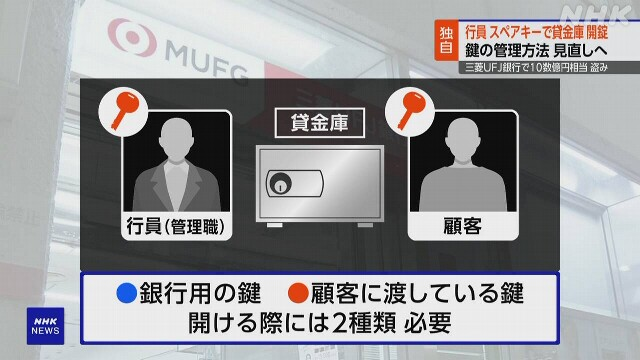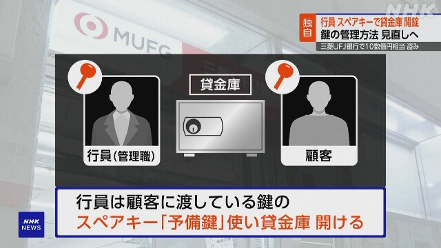 三菱UFJ銀行元行員 スペアキーで貸金庫から10数億円相当窃取か | NHK | 金融