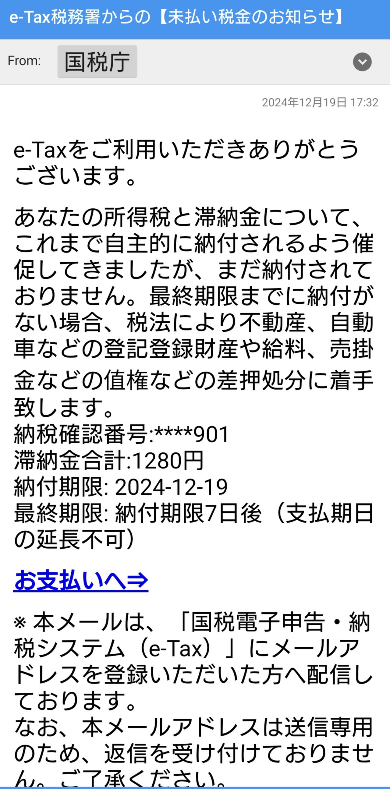 【警告】国税庁から『このメール』来たやつ・・・・・