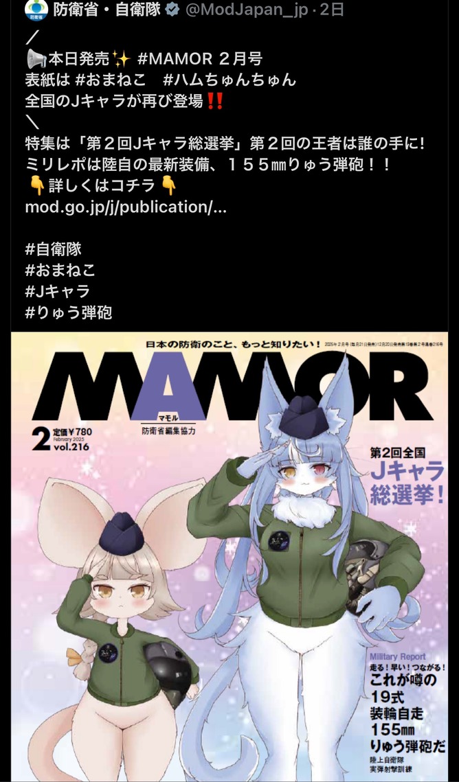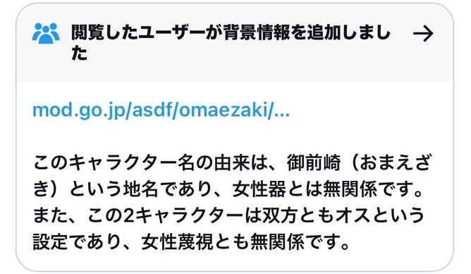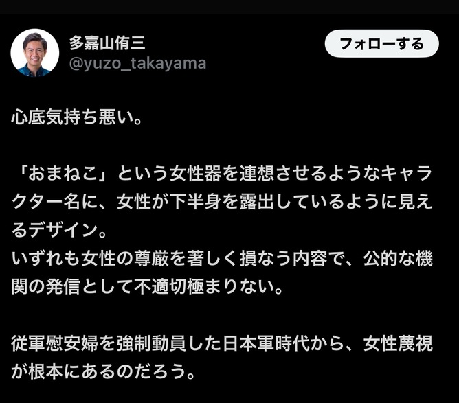 【悲報】沖縄議員「おまねこという、自衛隊のマスコット。女性器を連想させる名前で下半身を露出させている女そのもので気持ち悪い。」