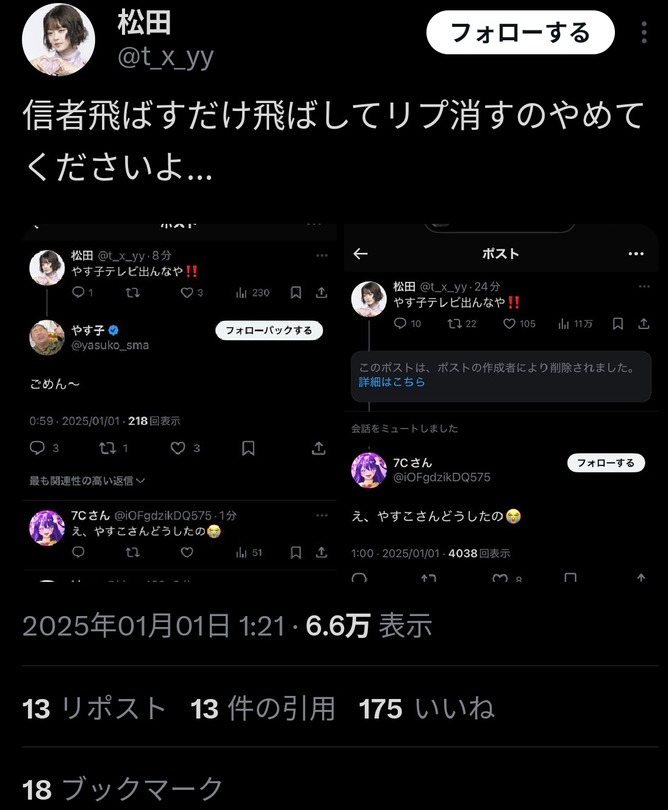 やす子が新年早々アンチに絡んでファンネル飛ばす→ツイ消し