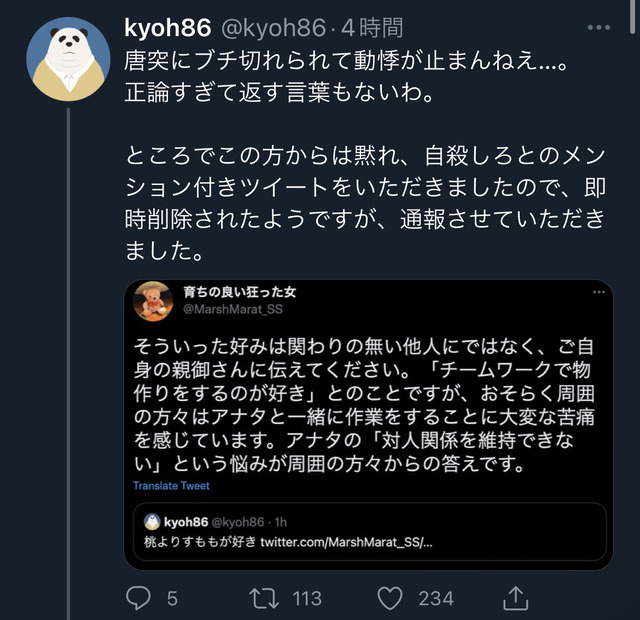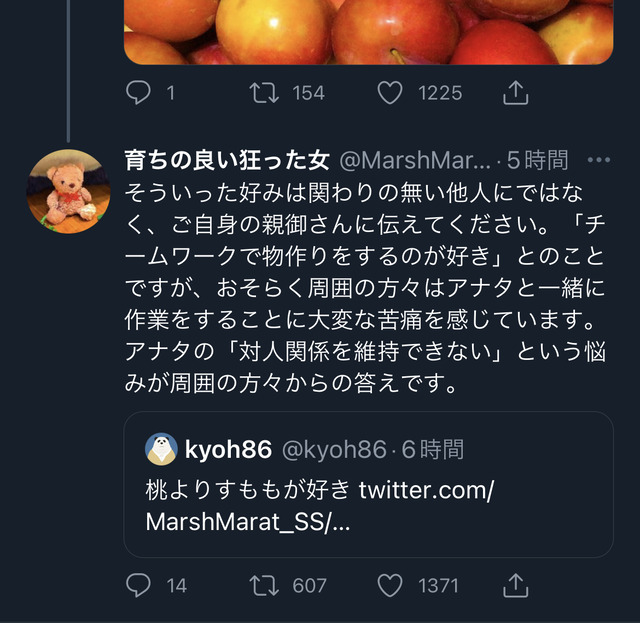X民さん、女さんのすももを褒めただけで唐突にブチぎれられ動機が止まらなくなる