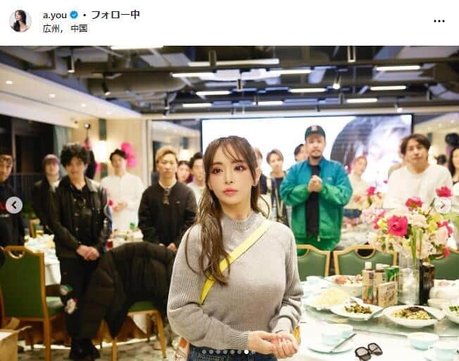 浜崎あゆみ46歳、デニム姿で豪華乾杯 「グラスと顔の大きさ一緒」「AIかと思ったぐらい美加減凄まじい」