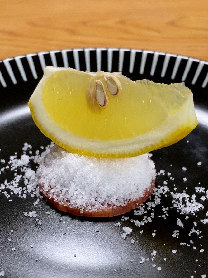 1.サラミに食塩(大さじ1杯)を振りかける ※足りなければ足しても良い