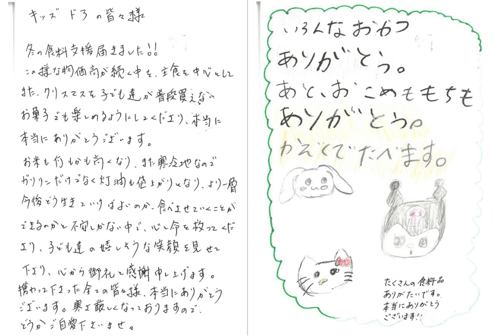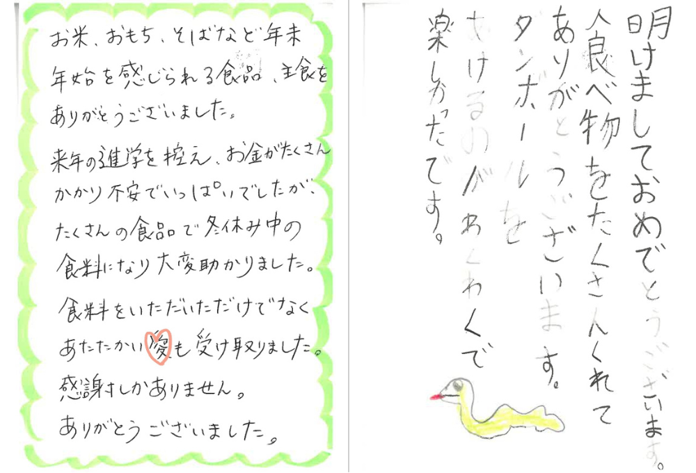 【ご家庭の声】食料品を受け取られたご家庭からの声が届いています | <冬休み緊急食料支援>不足する食料と学習機会を子どもたちへ届けます