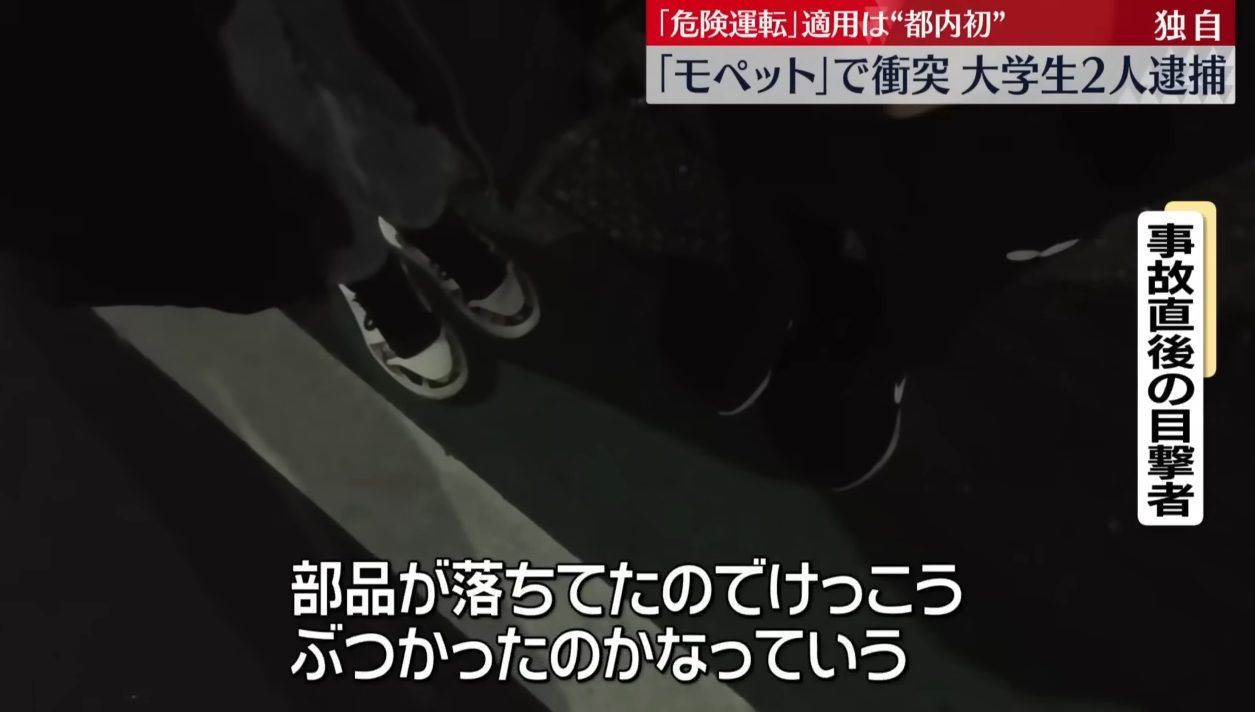 東京都世田谷区で、私立大4年の容疑者(22)が、無免許でモペット(ペダル付き電動バイク)を2人乗りで運転し、自転車の50代男性に衝突して重傷を負わせた疑いで逮捕された。