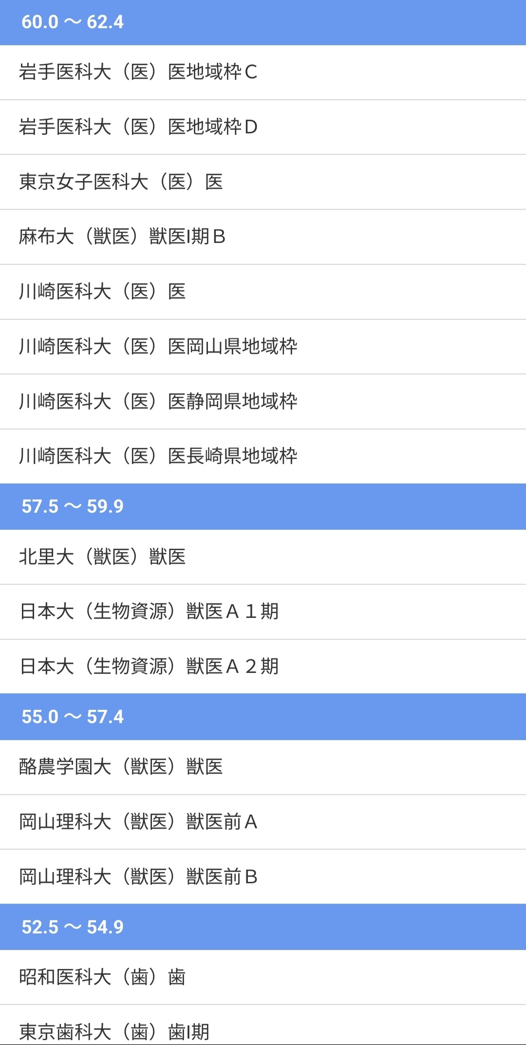 入試難易予想ランキング表