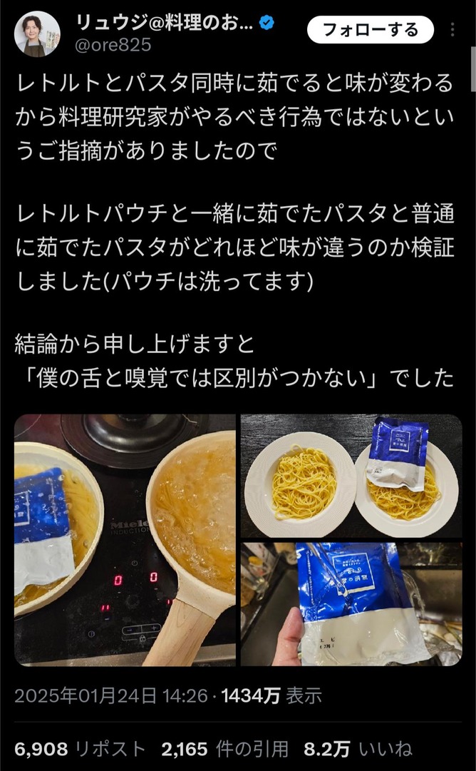 「僕の舌と嗅覚では区別がつかない」でした pic.twitter.com/Lnn7AEtgwu— リュウジ@料理のおにいさんバズレシピ (@ore825) January 24, 2025