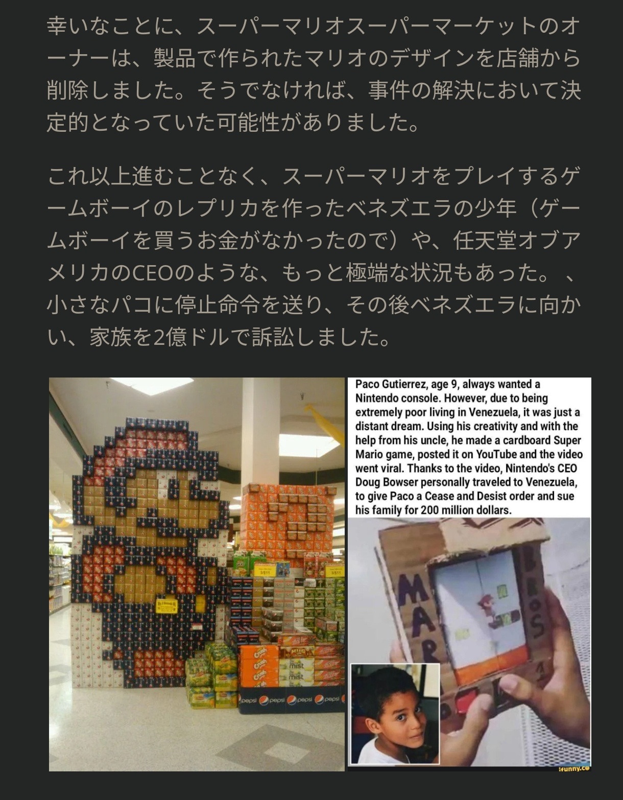 どうでもいいけどラテン圏でマリオさんの名前で商売すんのやめろいうたら何万人にも影響出るよな