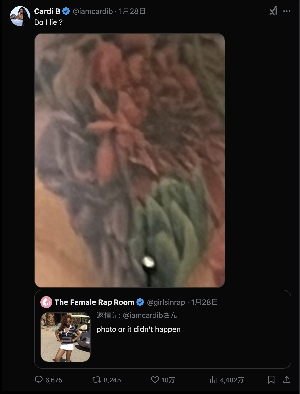大胆なパフォーマンスや衣装を披露し、いつもファンを驚かせてくれるカーディ・B。1月27日(現地時間)には、「おしりの割れ目にピアスを開けたこと」をXにて報告。