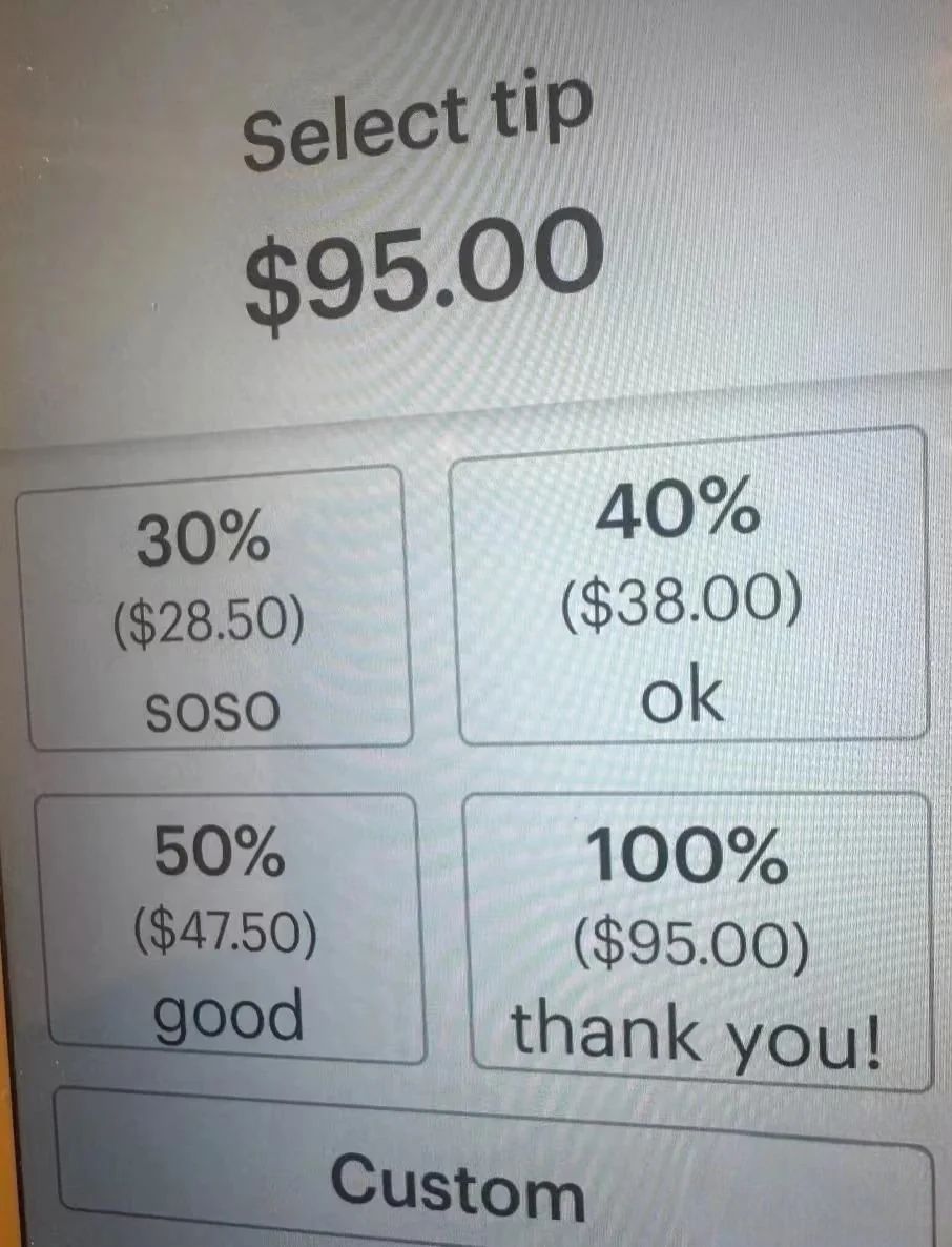 Asking customers for 100% tip is diabolical pic.twitter.com/r65HWH4hln
