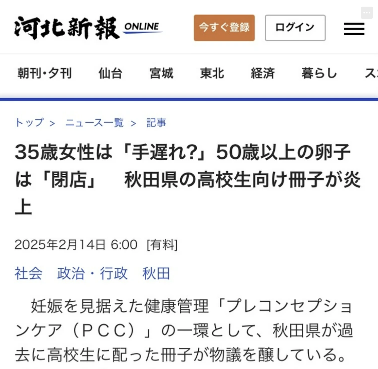 将来の妊娠のために健康管理を促す国の「プレコンセプションケア」の一環として、秋田県が高校生に公費で配布したパンフを取材しました
