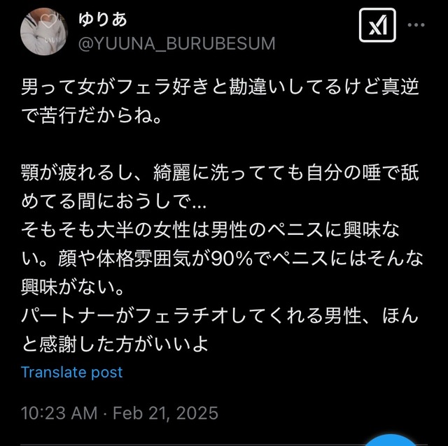 別に男も「女はフ●ラ好き」なんて思ってないよな