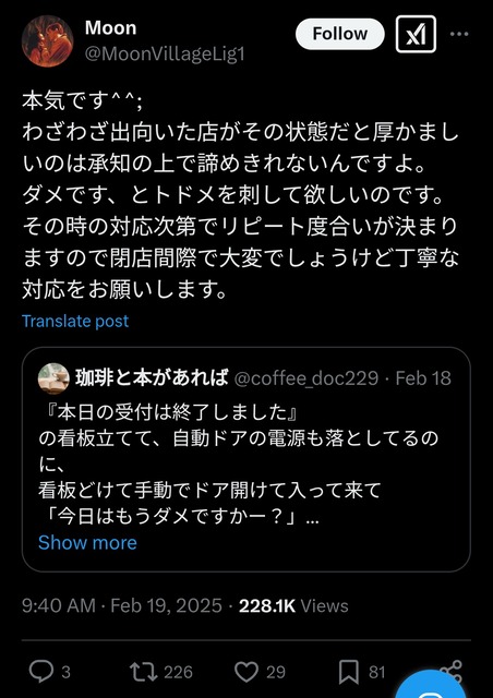 責めたりしません、本気で何考えてるのか知りたいので教えてください。— 珈琲と本があれば (@coffee_doc229) February 18, 2025