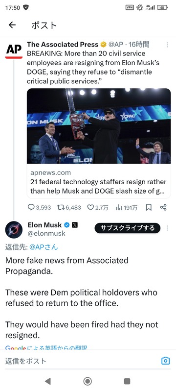 米の効率化省職員、抗議の辞職 政府解体に「協力せず」