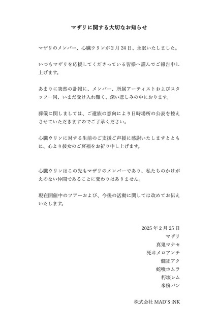 マザリに関する大切なお知らせ pic.twitter.com/fi2tMwxo3p