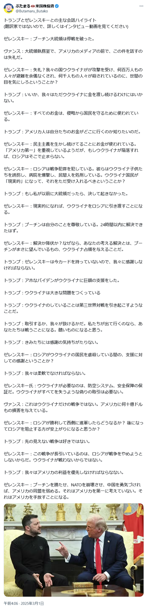 【悲報】トランプ、ゼレンスキーと激しい口論になり交渉決裂wwww