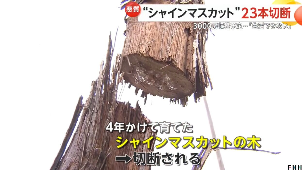 【悪質】「生活できない」農家から悲痛の声…4年かけて育てた“シャインマスカット”の木23本が切断 ブドウ盗まず目的は?1000万超の損害に 山梨 #FNNプライムオンライン https://t.co/F9lnQPAYnj