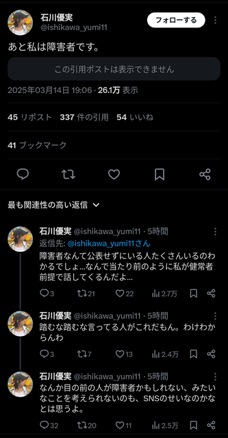 【悲報】ウ●コールフェミさん「私、女ですけど?」が通用しなくなったので別のカードを切り出す 2025/3/15 キニ速 1:名無し :2025/03/15(土) 00:58:35.102ID:.o4fkWeYY 7:名無し :2025/03/15(土) 01:00:02.858ID:mTbwuykld 第二形態でくさ 2:名無し :2025/03/15(土) 00:58:52.827ID:UlOWDQFNM 草 11:名無し :2025/03/15(土) 01:00:50.195ID:dJbrS6l07 勝てない😖 続きを読む Source: キニ速