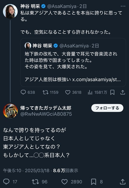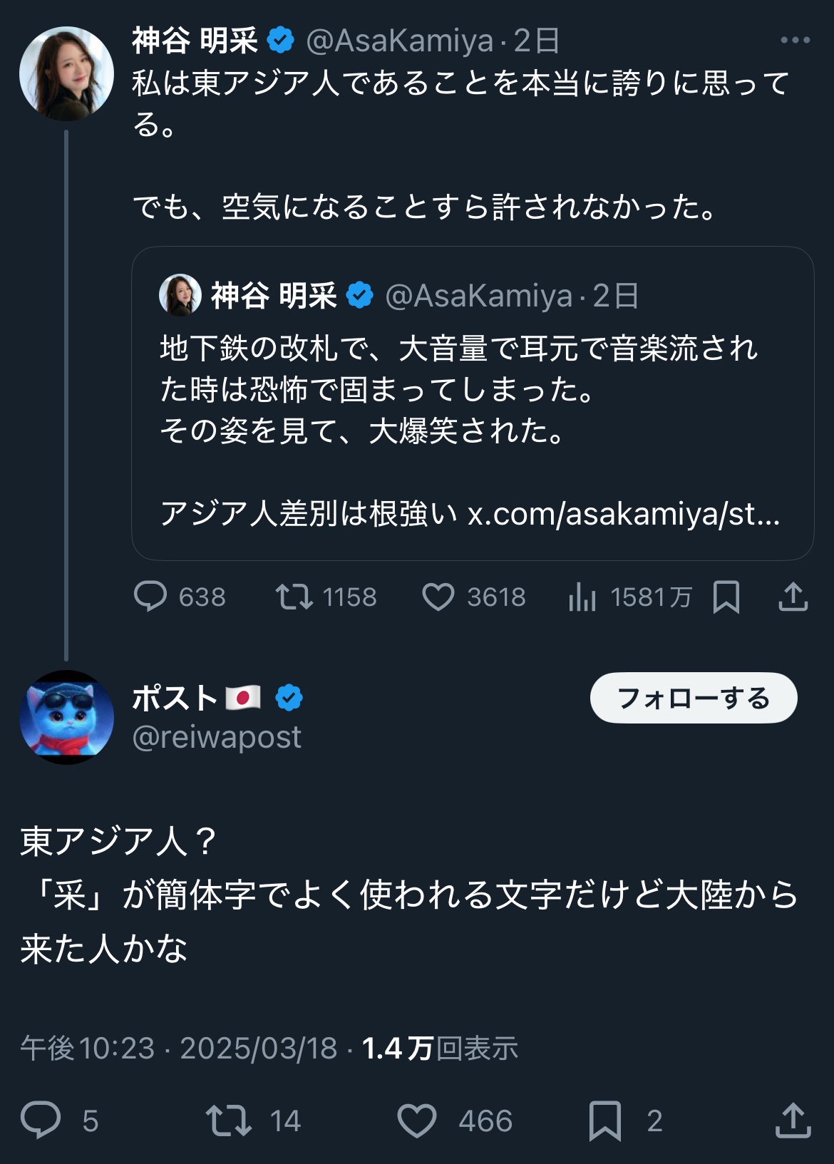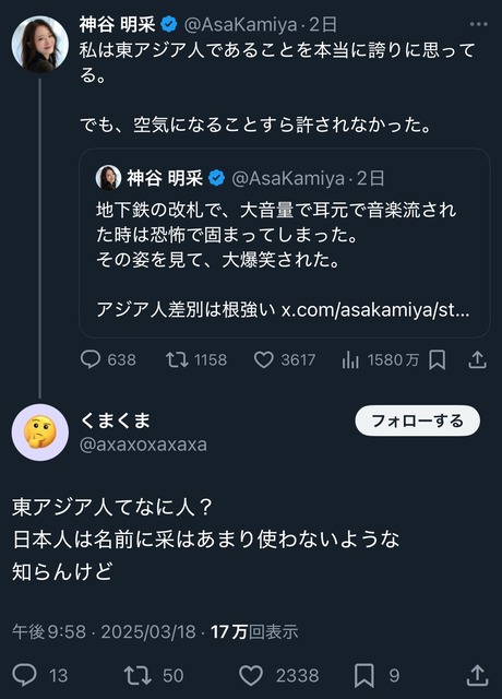 アジア人としてーならわかるけど東アジア人としてーはわからん