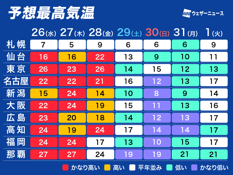 ただ、週後半は気温が一気に下がって、週末は花冷えの所が多くなる見込みです。https://t.co/JMMWFYIfcd pic.twitter.com/BR3xtskMmL— ウェザーニュース (@wni_jp) March 24, 2025
