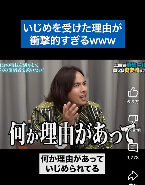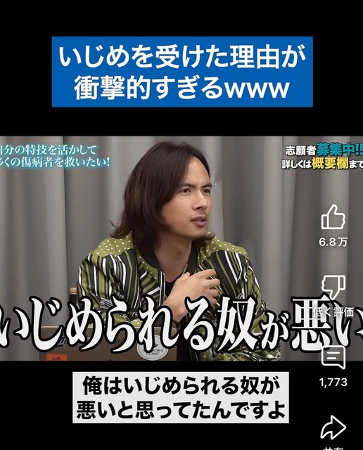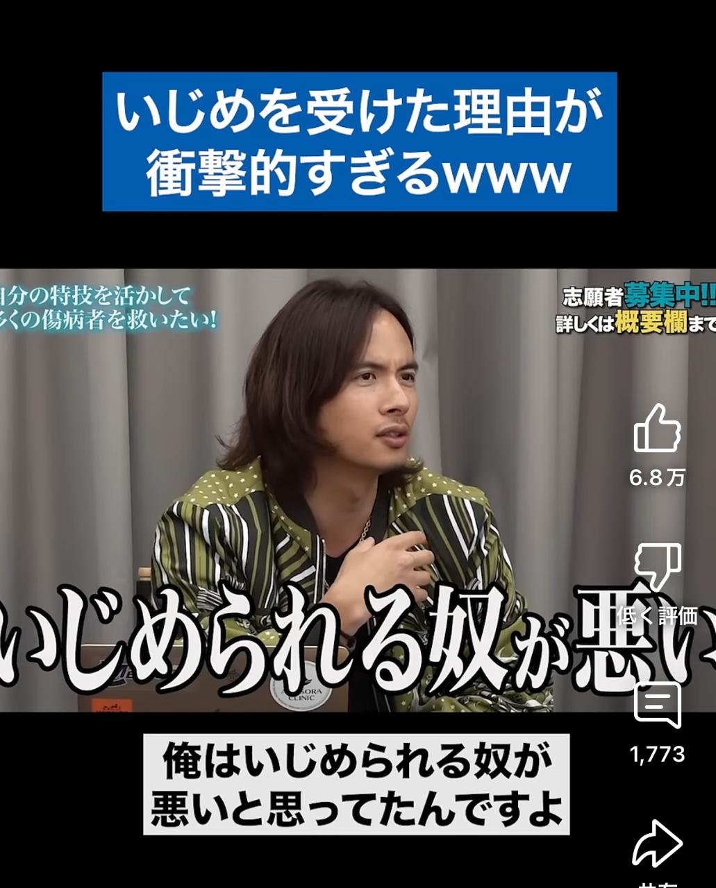 【動画】イケメン美容外科医「俺はいじめる側だったけどいじめられる方が悪い。必ず理由があるから」 2025/3/28 キニ速 1:名無し :2025/03/28(金) 01:33:44.991ID:9JPHKgyWd 9:名無し :2025/03/28(金) 01:37:14.178ID:M3qWPoadH こいつがイジメてたなら単にこいつが気に入るか気に入らないかだけやろ? なにいってんだこいつ 10:名無し :2025/03/28(金) 01:38:04.767ID:obeamzBW/ ただの自己正当化やんけアホくさ 続きを読む Source: キニ速