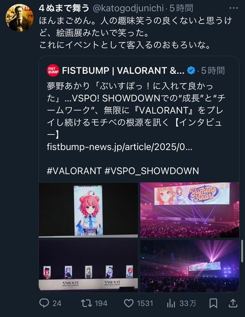 これにイベントとして客入るのおもろいな。 https://t.co/bfgLxqFhiF— 4ぬまで舞う (@katogodjunichi) March 29, 2025