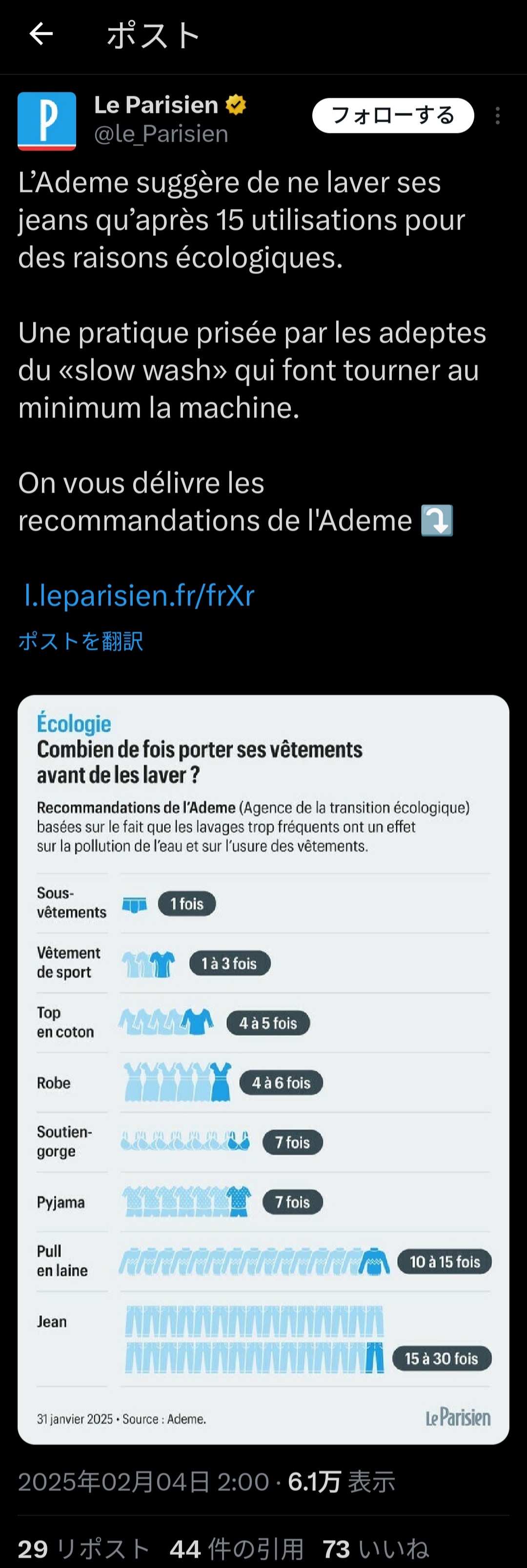 L’Ademe suggère de ne laver ses jeans qu’après 15 utilisations pour des raisons écologiques.