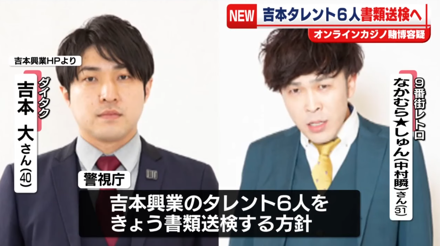 吉本興業に所属するタレント6人がオンラインカジノで金を賭けていたとして、警視庁は3日、賭博の疑いで書類送検しました。捜査関係者によりますと、書類送検されたのは、吉本興業に所属する