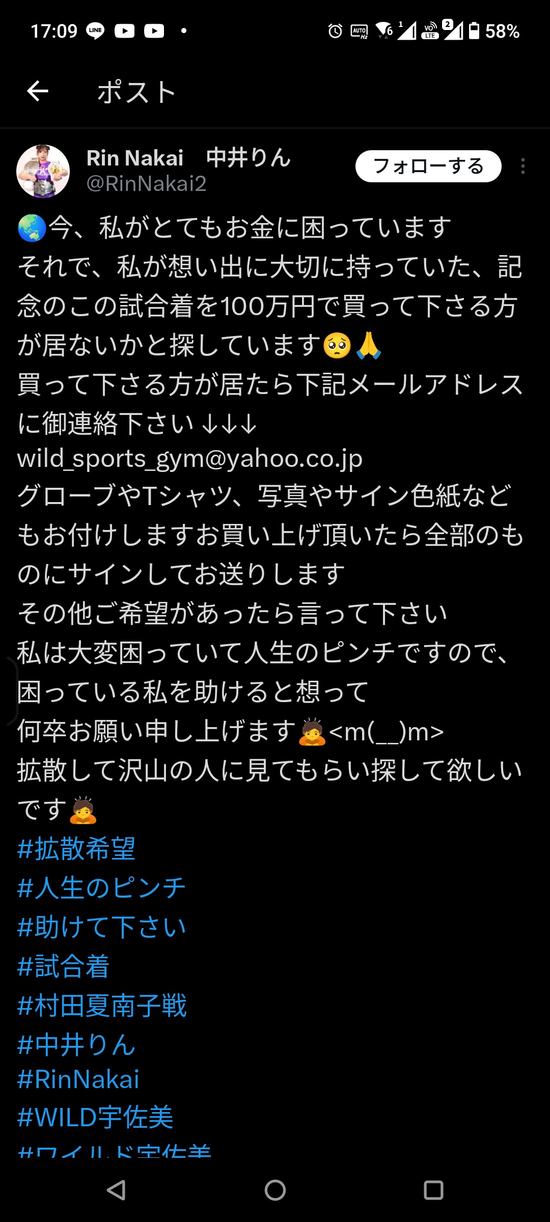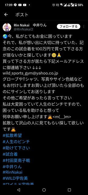 wild_sports_gym@yahoo.co.jp… pic.twitter.com/TIxAYR5g9Y— Rin Nakai 中井りん (@RinNakai2) April 7, 2025