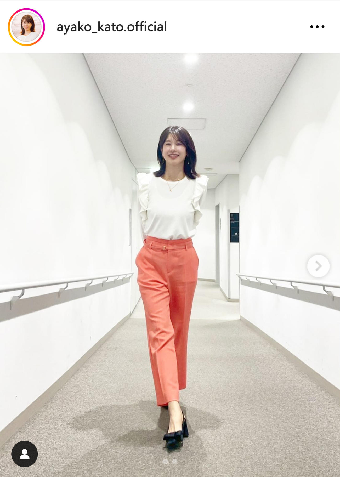 フリーアナウンサーの加藤綾子(39)が11日までに、自身のインスタグラムを更新。23年末に第1子となる女児出産後初のレギュラー番組「ナゼそこ?+」(テレビ東京系、木曜午後8時58分)での衣装を投稿した。