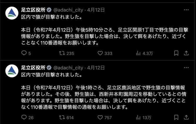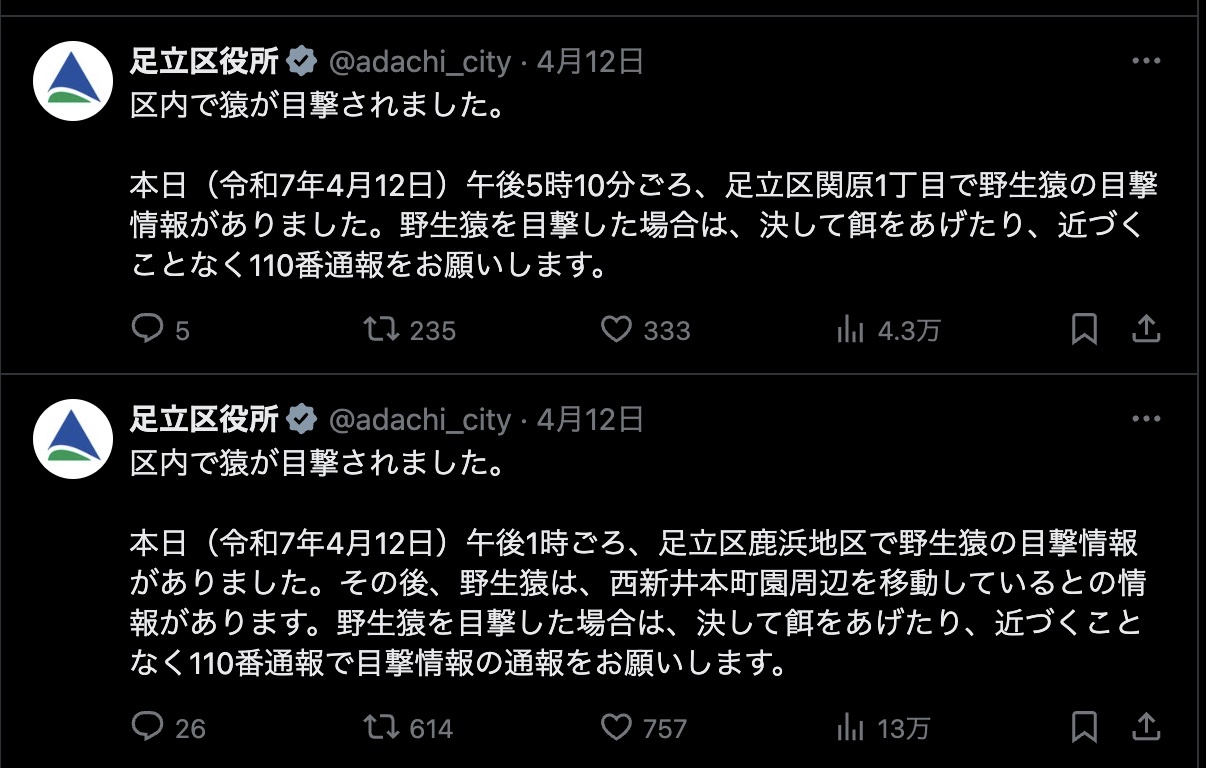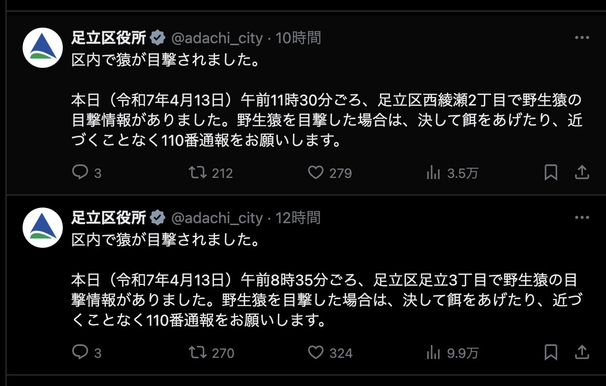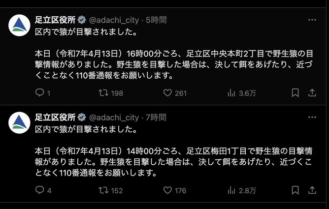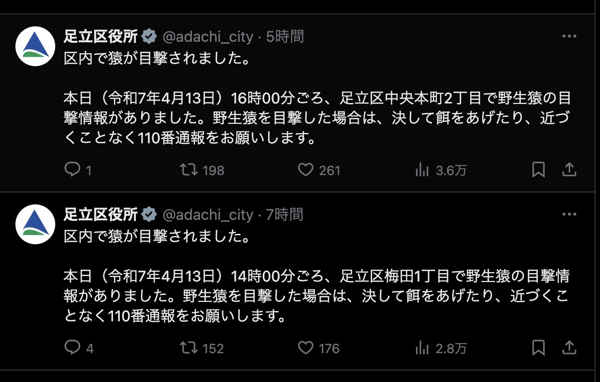 【悲報】足立区、猿に占領される